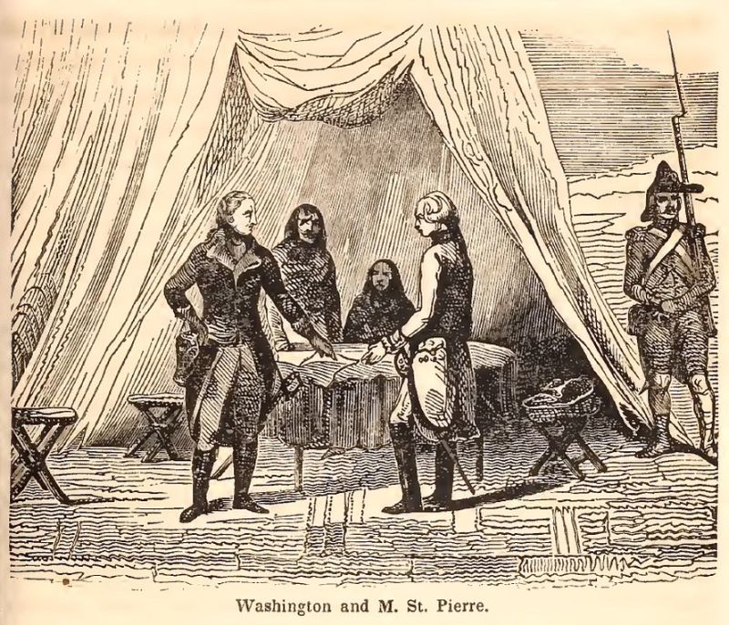 Washington reached Venango on November 30, where the local French commander greeted him warmly and offered wine and brandy. Intoxicated, some of the Indians pledged allegiance to the French, and it took Washington three days to convince them to go on with him. They finally reached Fort Le Boeuf and met the French commander, Jacques Legardeur de Saint-Pierre. Saint-Pierre received him with hospitality, but firmly rejected Dinwiddie’s demands. He pointed out that the letter should have been addressed and delivered to his superior, the Marquis Duquesne, who was the governor of New France and resided in Canada.